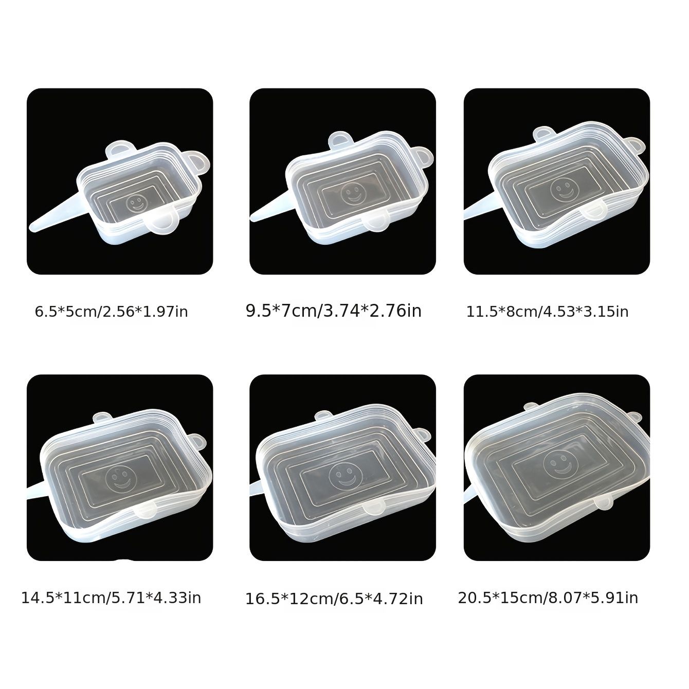 6pcs Rectangular Silicone Fresh-keeping Lid; Eco-friendly Reusable Food Covers For Bowls; Cups; Cans; Fit Different Sizes & Shapes Of Container; Dishw